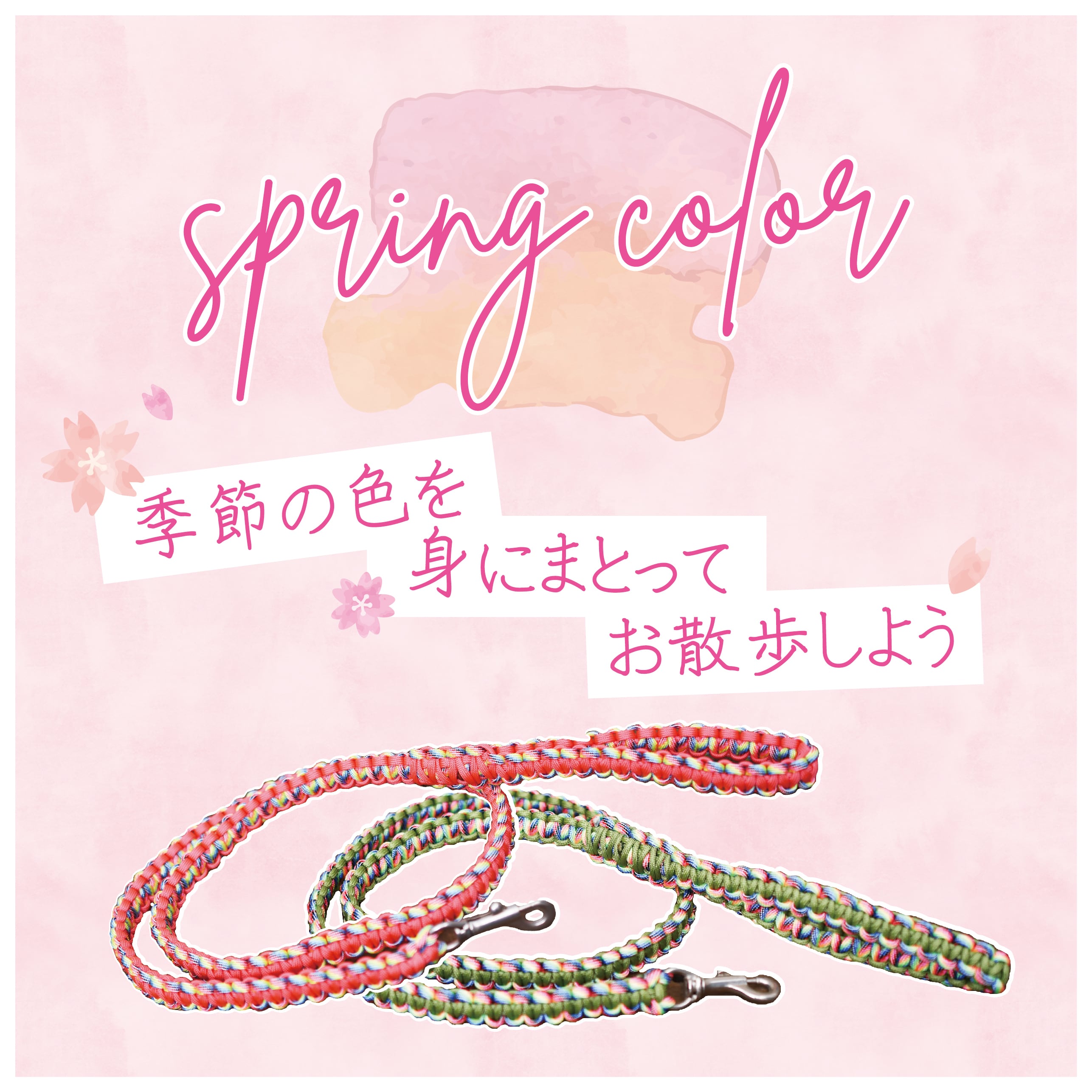 SS~Sサイズ用リードはテープ幅が1.5mm、M~Lサイズ用リードはテープ幅が2.5mmとなっています。どちらも飼い主様が握りやすい柔らかさで、お散歩も快適。